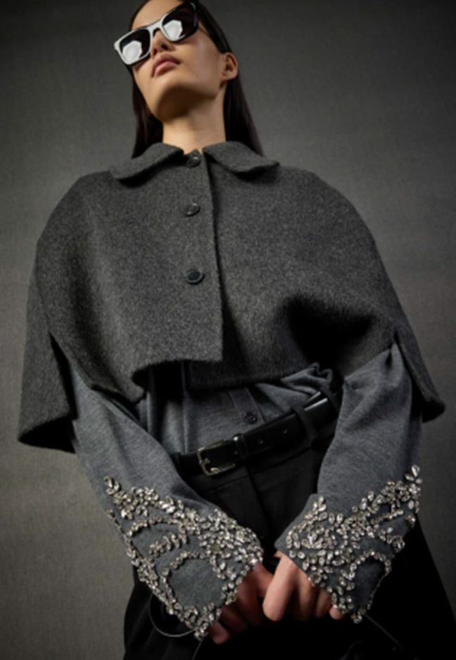 Liviana Conti is renowned for its relevance, meticulous approach, detailing, patterns and geometric lines. Every collection involves extensive research and experimenting with innovative and exclusive materials. Production is mainly artisanal, even if it sometimes incorporates advanced technology.